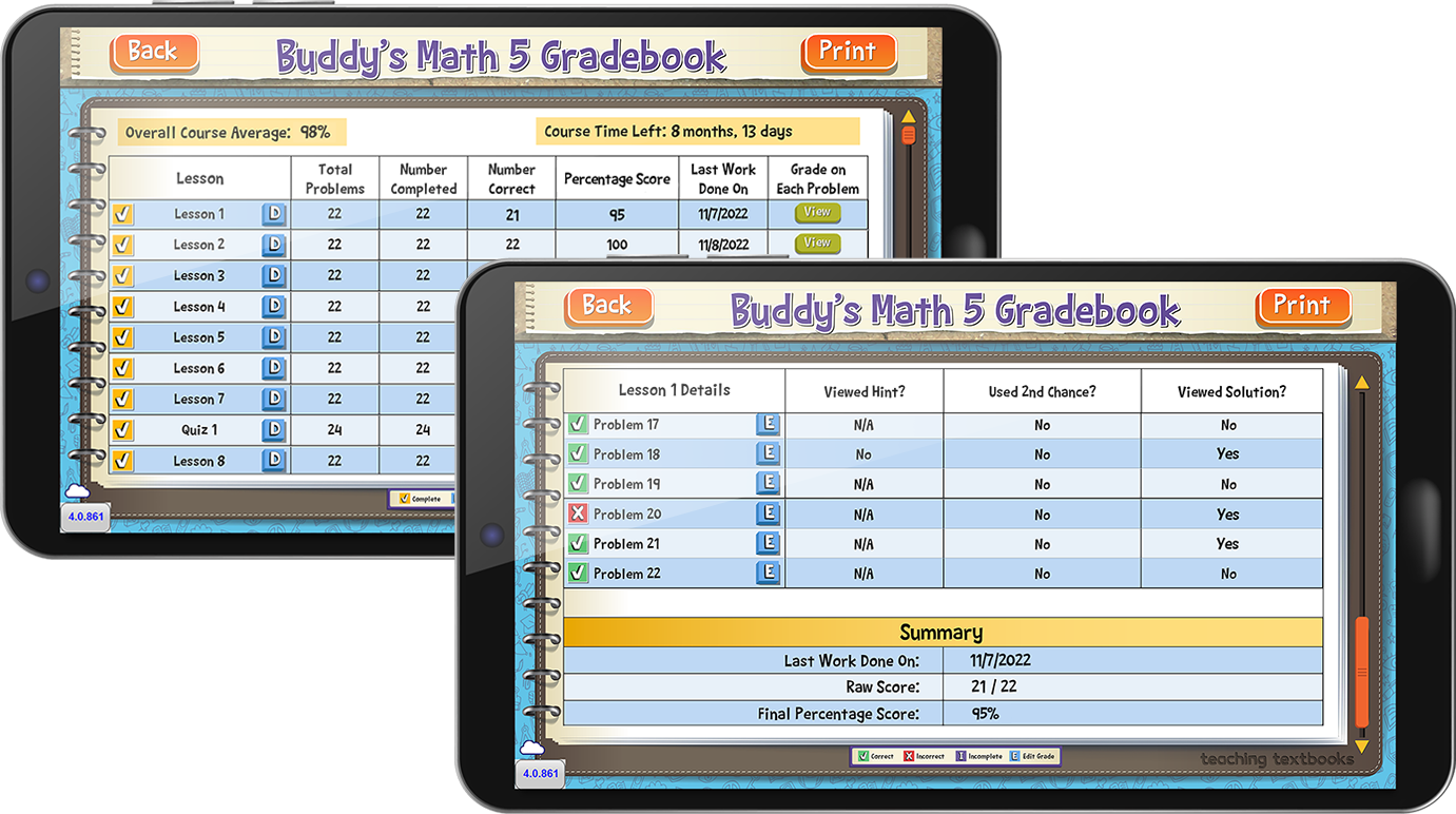 3rd-6th grade students will need a device such as an iPad or laptop to complete their math lessons. The program provides engaging, voice-guided lessons and automatic grading, helping students take ownership of their learning.
